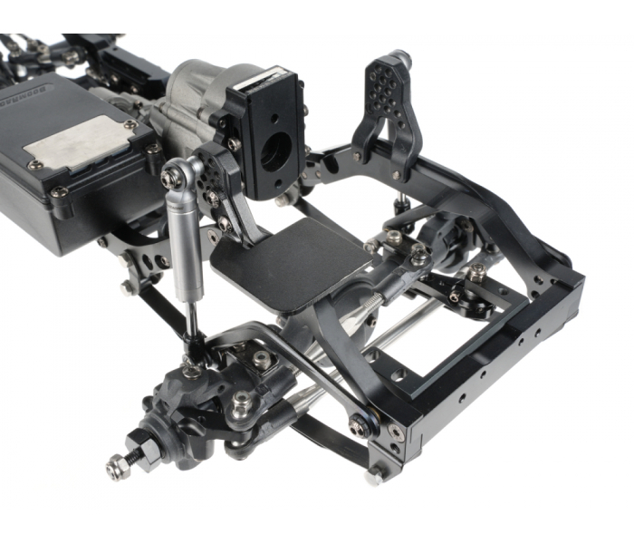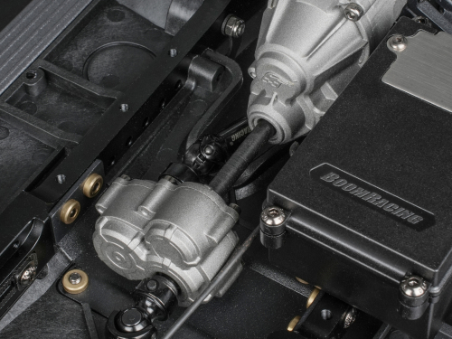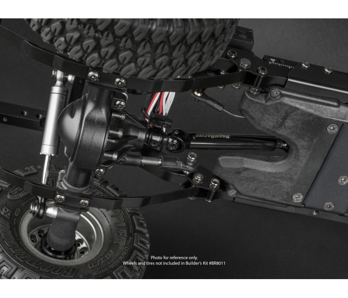 At its core, the BRX01 AWB runs on the proven BRX80 PHAT™ axles, with an all-new C-hub and knuckle design using kingpins and brass bushings for enhanced durability and long-term performance. The axles use our popular proprietary AR44 heavy-duty hardened steel triangular keyed bevel helical cut 30/8T diff gears, with the same but reversed cut gears in the rear axle. The rear axle counter-rotates, which results in near-zero torque twist for chassis stability.