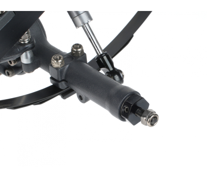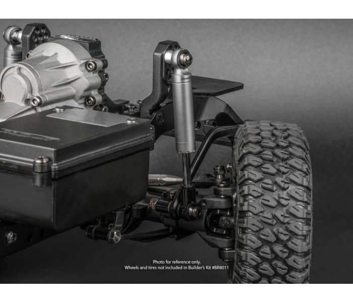 Optimized for scale performance, the KUDU™ Scale Shock Absorber features billet aluminum cylinder body for durability, steel shock shaft with titanium nitride coating, plastic pivot retainers (replaceable) for smoother swivel movements, high-degree pivot angle for high-angle articulation, and double X-Ring oil seals. It comes with cylinder and friction seals to prevent leaks and contaminants from entering. The bump stop provides an additional level of bottoming control, stainless steel pivot balls for stainless, corrosion-resisting pivot rotation, and an aluminum pivot ball tool included for hassle-free maintenance.