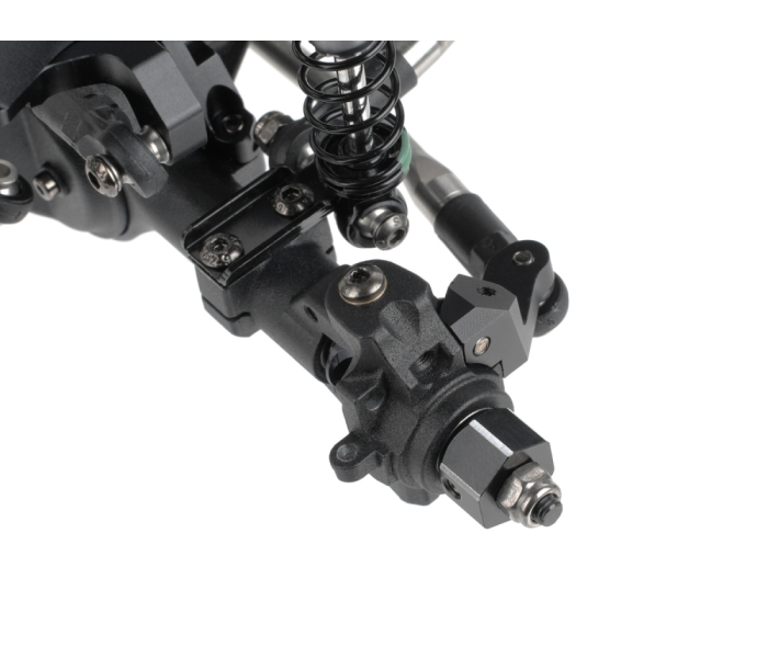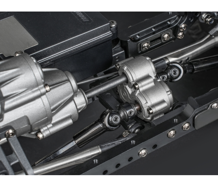At the foundation are the proven BRX80 PHAT™ axles, now upgraded with a new C-hub and knuckle design using kingpins and brass bushings for improved durability and long-term precision. Inside, our proprietary AR44 heavy-duty hardened steel triangular-keyed, bevel helical-cut 30/8T differential gears are used front and rear, with reversed-cut gears in the rear axle. The counter-rotating rear axle effectively cancels torque twist, resulting in exceptional chassis stability under load.