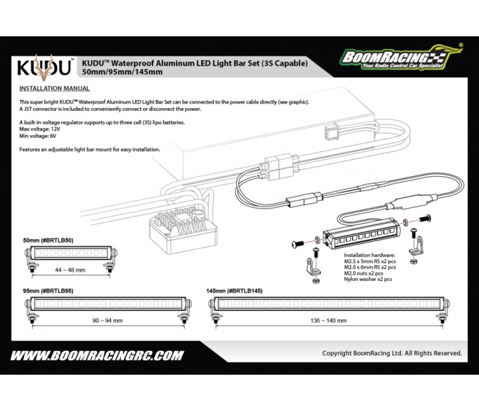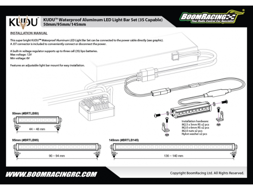 This is Boom Racing KUDU™ Waterproof Alum LED Light Bar Set (3S Capable) 145mm.