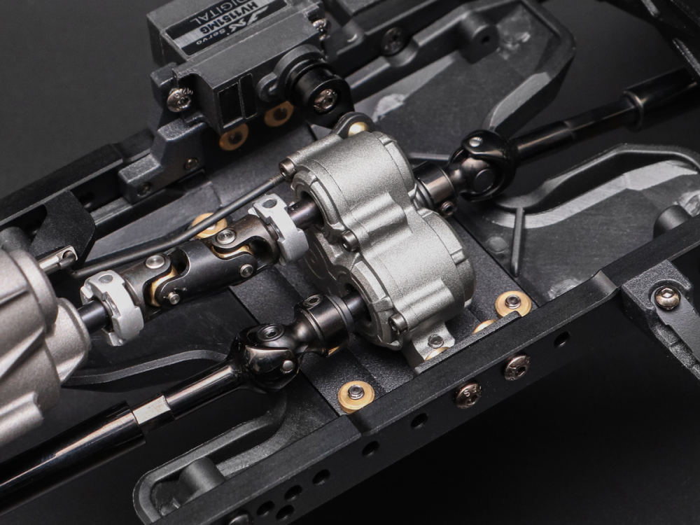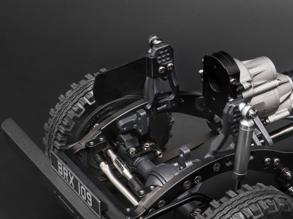 The BRX02 kit includes factory pre-built axles, transmission, transfer case and shocks. Shocks require oil to be filled (included).