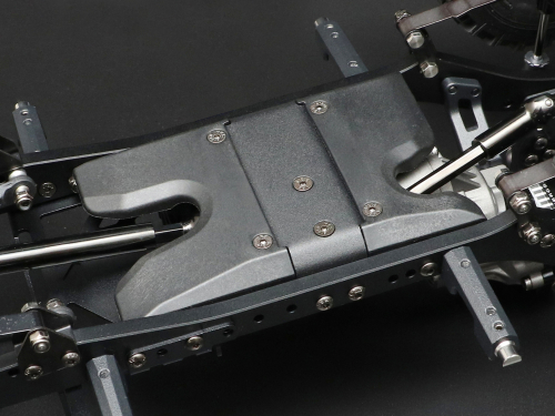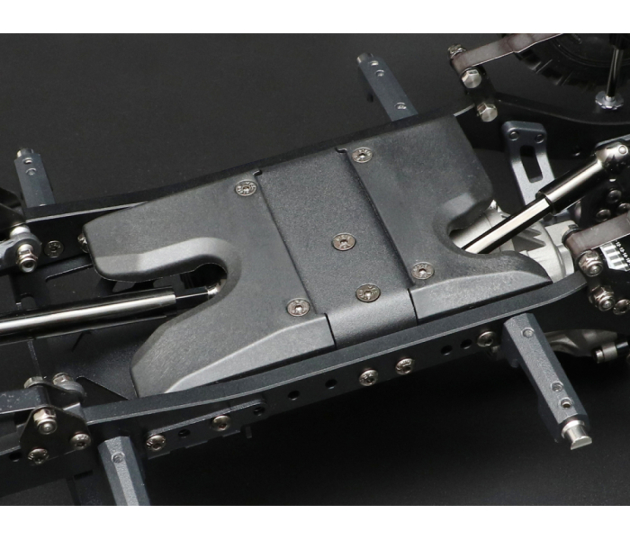Replacement molded plastic center rear skid plate slider for the BRX02 88 chassis.
