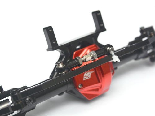 The front axle is set up for Y link (3 link) and the rear is a 4 link set up. If you want to use 4 link setup on the front axle the servo cannot be mounted on the axle