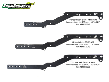 First, the BRX01 AWB and the original BRX01 share most of the same components. That is why the new chassis carries the BRX01 name. The main addition is its adjustable wheelbase. Many parts from the BRX01 AWB chassis are fully compatible with the BRX01.