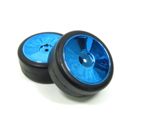 Dish Wheel & Rubber Tire Set For 1/10 Pattern D Blue