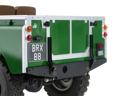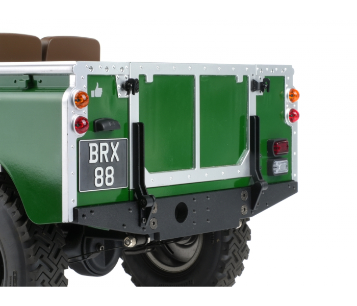 Transform your Boom Racing Land Rover Series body with this optional drop-down tailgate upgrade, faithfully replicating the function and look of the original vehicle design.