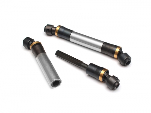 Heavy-duty universal driveshafts with carbon jacket for the Axial Wraith from Boom Racing. Designed for the Axial Wraith but compatible with AX10 and SCX10 platforms.