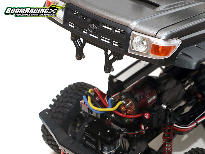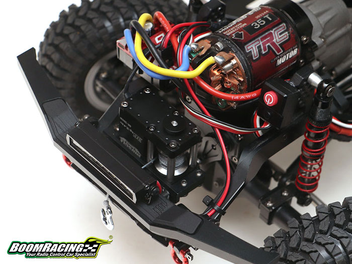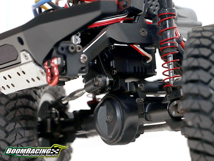 At the moment of this article, the only way to use KUDU Bumper Kit with an internal servo winch is to move the steering servo from the chassis (CMS) to the front axle. You can achieve this by using the Boom Racing PYTHON BLACK axle-mounted servo and convert the truck to a 4-link setup.