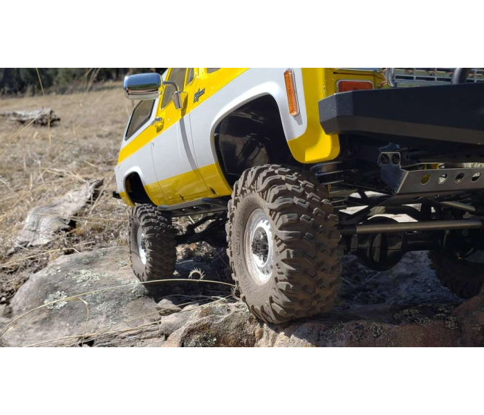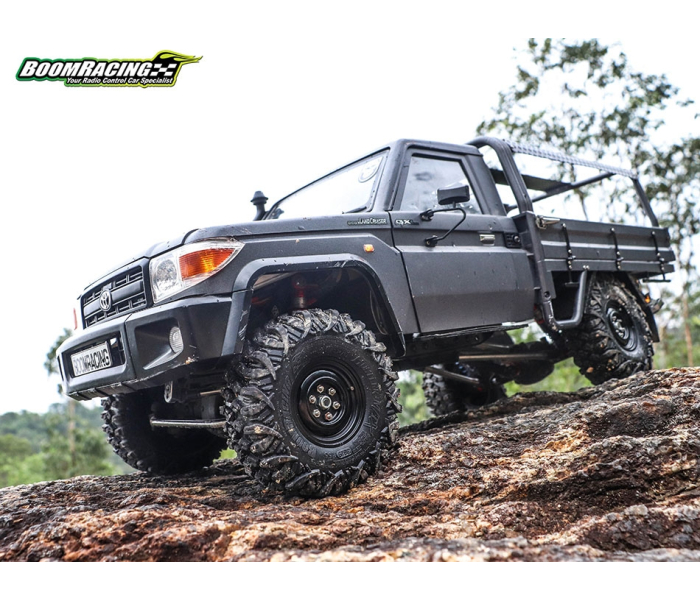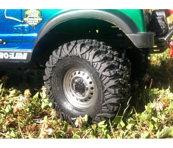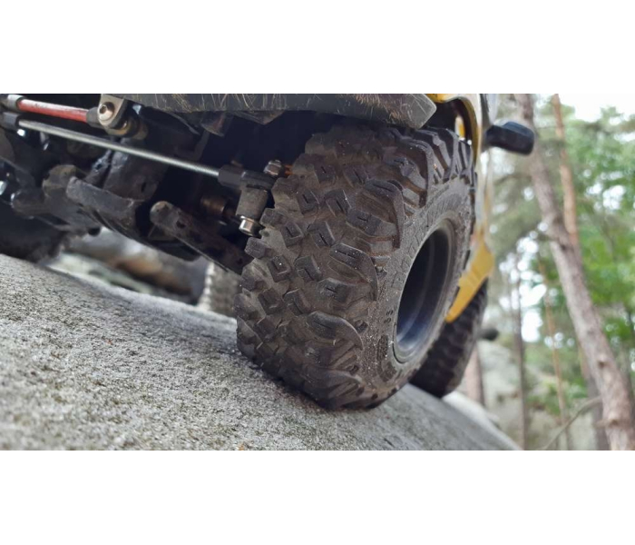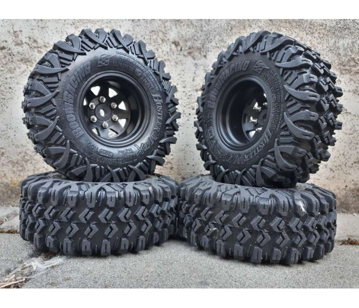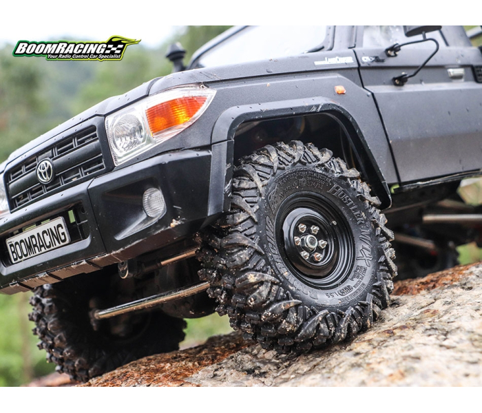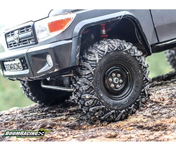 This is Boom Racing's smallest HUSTLER tire to date. At 3.74"x1.3" (95x33mm) for 1.55" wheels, they are perfect for fitting scale body builds while giving great performance on the trails.