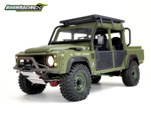 Boom Racing collaborated with Knight Customs to create a one-off Defender D110 military themed pickup truck.