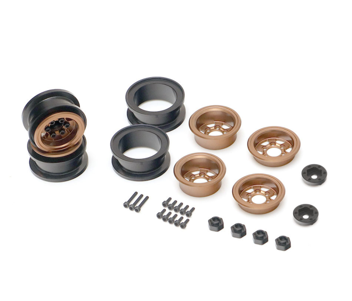 This Lite Version is made of machined billet aluminum. No matter if you are going for more performance or simply want better-looking wheels, upgrading your wheels is one of the first things you can do to your mini crawler. The major advantage for keeping the truck light is to have less rotating weight, which translates to less stress on the drivetrain. The aluminum center ring is designed to hold the foam insert in place.