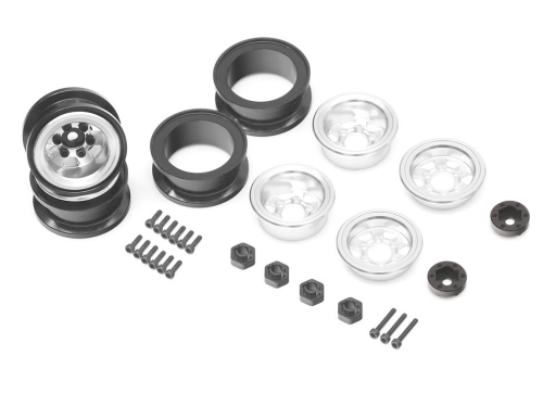 This Lite Version is made of machined billet aluminum. No matter if you are going for more performance or simply want better-looking wheels, upgrading your wheels is one of the first things you can do to your mini crawler. The major advantage for keeping the truck light is to have less rotating weight, which translates to less stress on the drivetrain. The aluminum center ring is designed to hold the foam insert in place.
