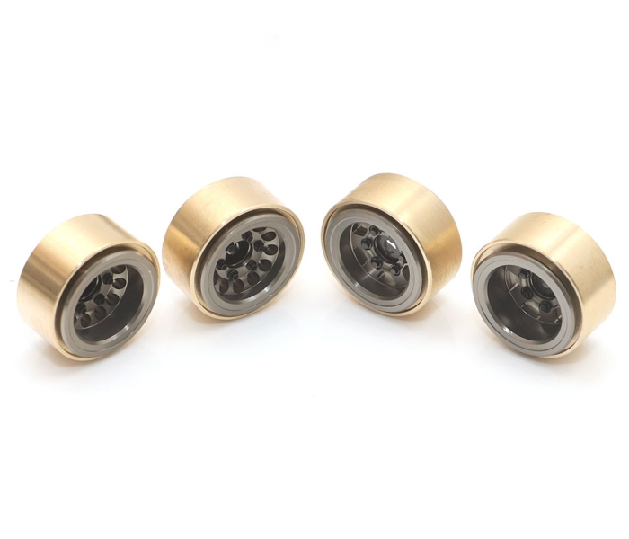 KRAIT™ 1.0" TE37 Beadlock Wheel w/ Brass Rings & Hub Options Set (4) Gun Metal