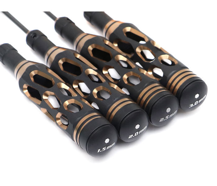 This is the Boom Racing KUDU™ Allen Hex Wrench Set (1.5 / 2.0 / 2.5 / 3.0mm, 4pcs). Engineered for precision and durability, these high-quality tools are ideal for building all types of R/C vehicles and for everyday use.