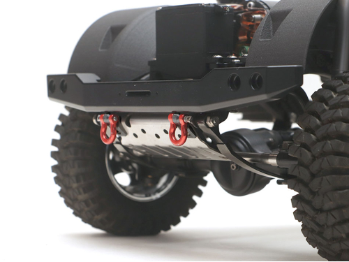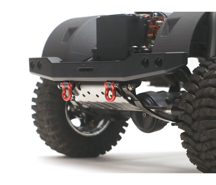 This is a full set of front skid plate with d-ring shackles, pins and aluminum mounts. Skid plate is made of stainless steel for durability and strength. D-ring shackles and mounts are CNC aluminum. D-rings are anodized in red color. Includes 12.9 grade hardware for installation.