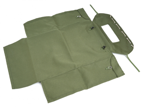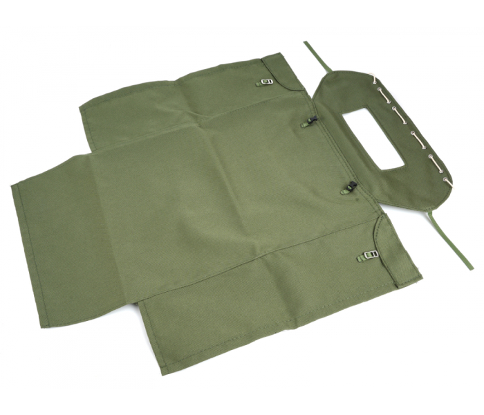This is a full canvas soft top for the Series Land Rover 109 Full Hood Set. The canvas can roll up in the back with straps on the top to lock in place.
