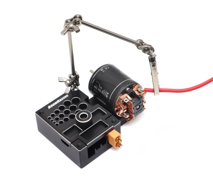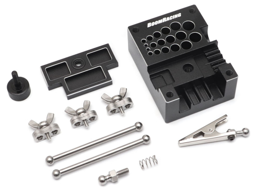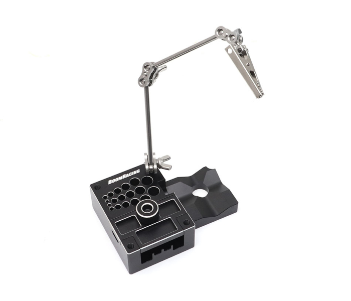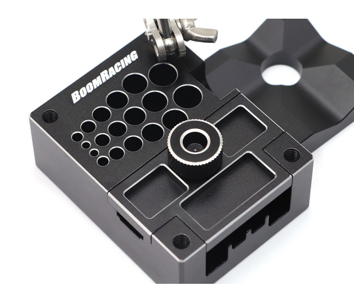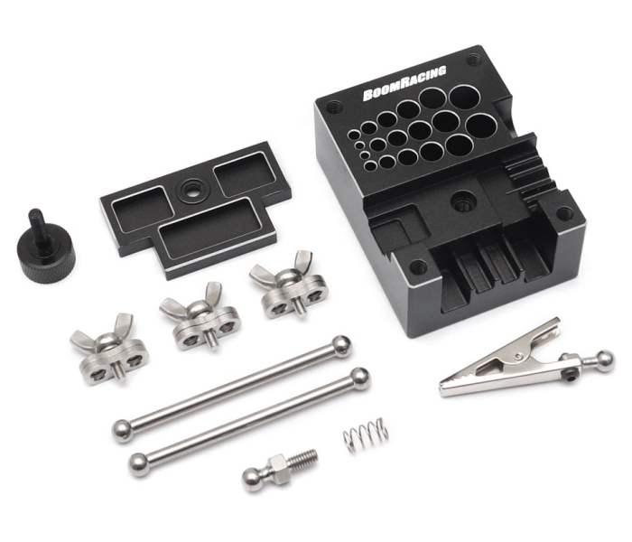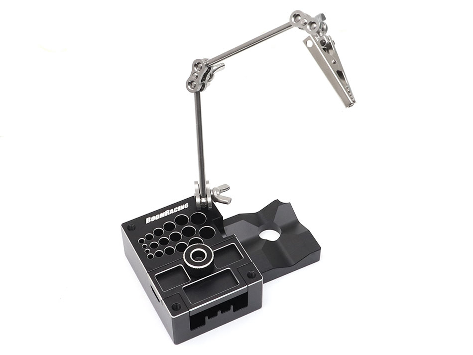 Designed from the ground up, the Boom Racing KUDU™ Multifunctional Soldering Jig is a beautifully crafted high-end billet aluminum and steel tool set for your R/C applications.