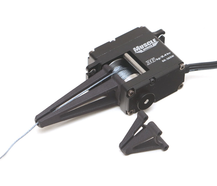 This Muscle Winch accessory allows you to easily route the winch line throughout your chassis without interference. The standard and low-profile winch leads prevent the winch line from bunching up on one side.