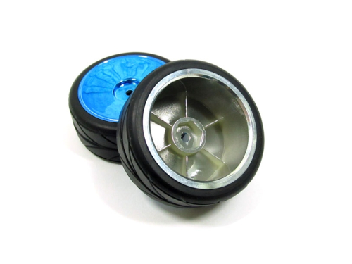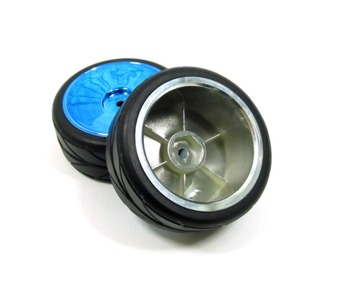 Outer Ring Dish Wheel & Arrow Pattern Tire Set For 1/10 Blue