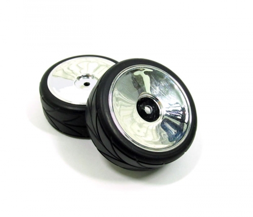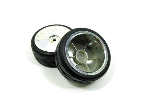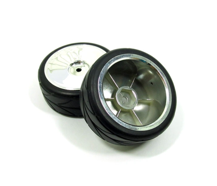 Outer Ring Dish Wheel & Arrow Pattern Tire Set For 1/10 Silver