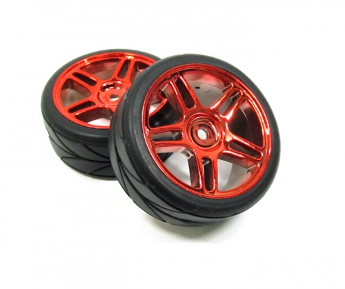 Outer Ring Wheel & Arrow Pattern Tire Set Dual 5-spoke For 1/10 Red