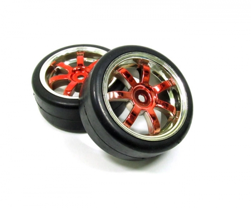 Outer Ring Wheel & Tire Set 7-Spoke For 1/10 Red