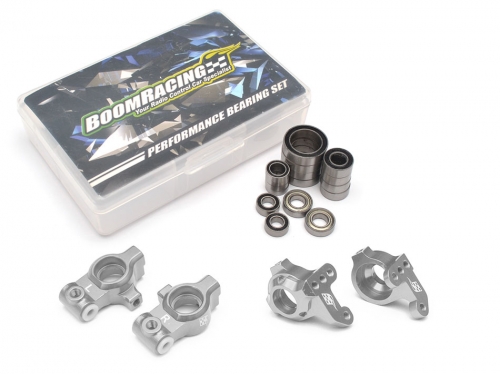 Performance upgrade combo package for 3RACING Sakura D4 1/10 drift cars from Boom Racing. Boom Racing performance upgrades include both high-quality aluminum replacements for the stock FRP parts, as well as custom-designed carbon fiber chassis and upper deck plates for a unique look.