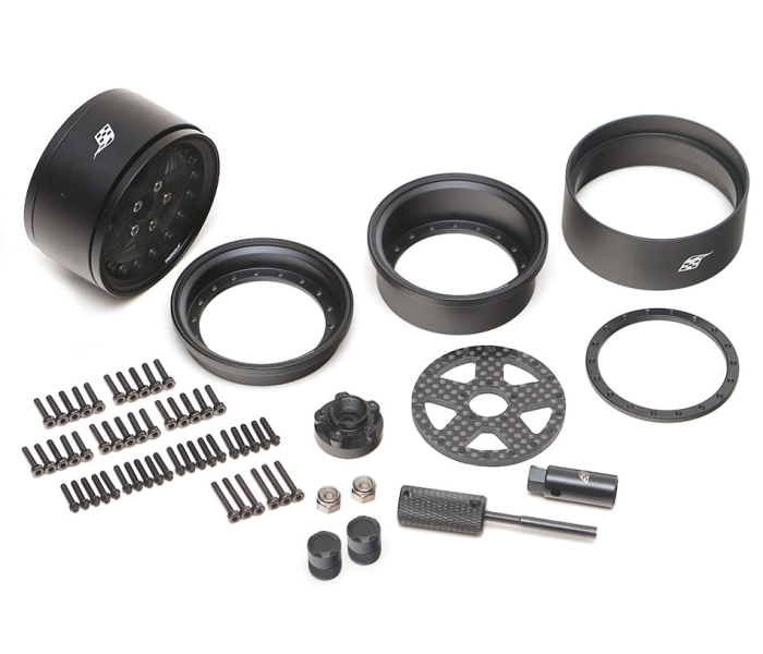 This is ProBuild 1.9" CF5 Adjustable Offset Carbon Fiber / Aluminum Beadlock Wheels (2). The Boom Racing ProBuild wheels use a patented design for quick and easy installation and setup.