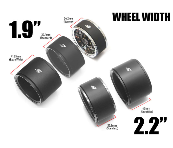 This is ProBuild 1.9" Narrow RRC 3-Spock Classic Adjustable Offset Aluminum Beadlock Wheels (2). The Boom Racing ProBuild wheels use a patented design for quick and easy installation and setup.