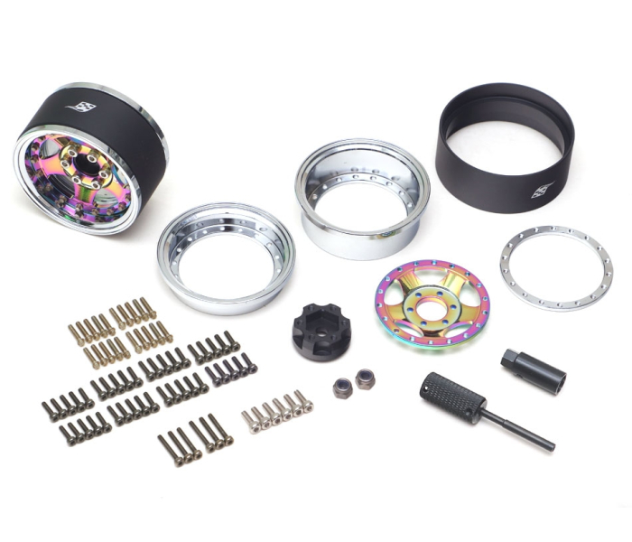 This is ProBuild 1.9" SV5 Adjustable Offset Aluminum Beadlock Wheels (2). The Boom Racing ProBuild wheels use a patented design for quick and easy installation and setup.