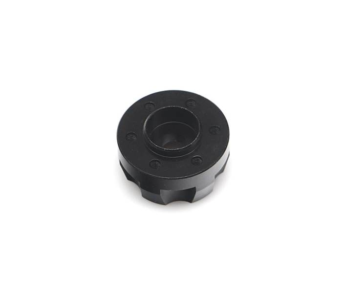 This is a hardened steel 7mm to 8mm socket nut wrench adapter. Eliminate the need for an 8mm socket nut wrench. This thin-walled 8mm (10.5mm) wrench adapter fits the Boom Racing XT6 V2 hubs. Use this if your vehicle uses M5 locknuts for the drive shafts. Features a center hole for easy torquing.