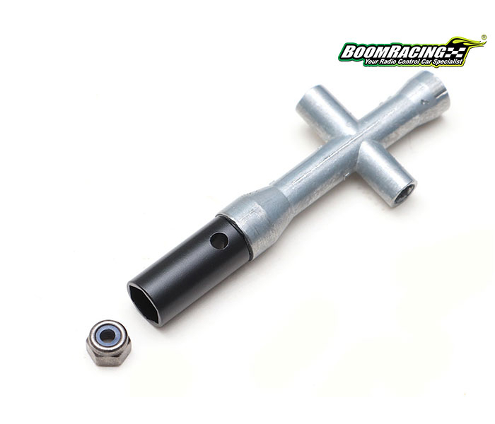 This is a hardened steel 7mm to 8mm socket nut wrench adapter. Eliminate the need for an 8mm socket nut wrench. This thin-walled 8mm (10.5mm) wrench adapter fits the Boom Racing XT6 V2 hubs. Use this if your vehicle uses M5 locknuts for the drive shafts.