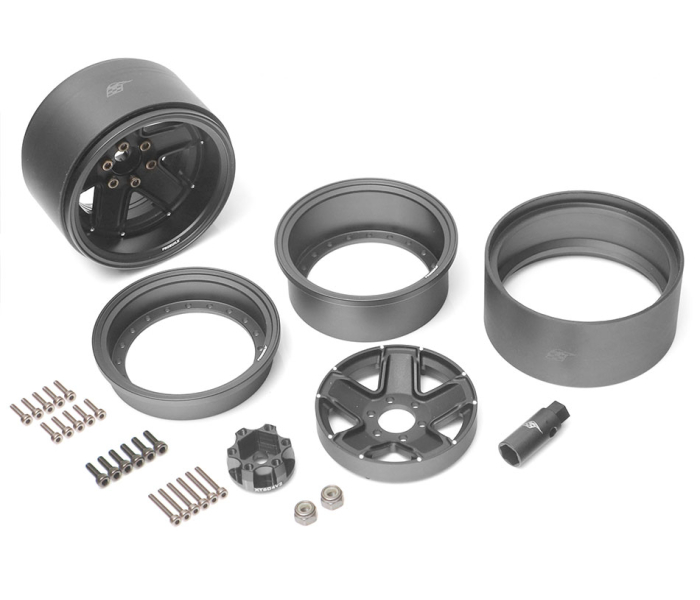 This is ProBuild 2.2" M13 Adjustable Offset Aluminum Beadlock Wheels (2). The Boom Racing ProBuild wheels use a patented design for quick and easy installation and setup.