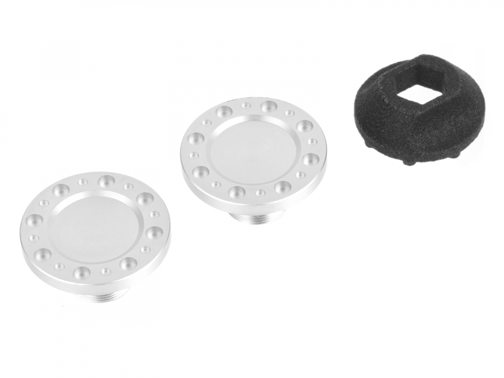 Replacement aluminum wheel cap (2) for Probuild COMBAT 1.9" wheels. Comes with tool for installation.