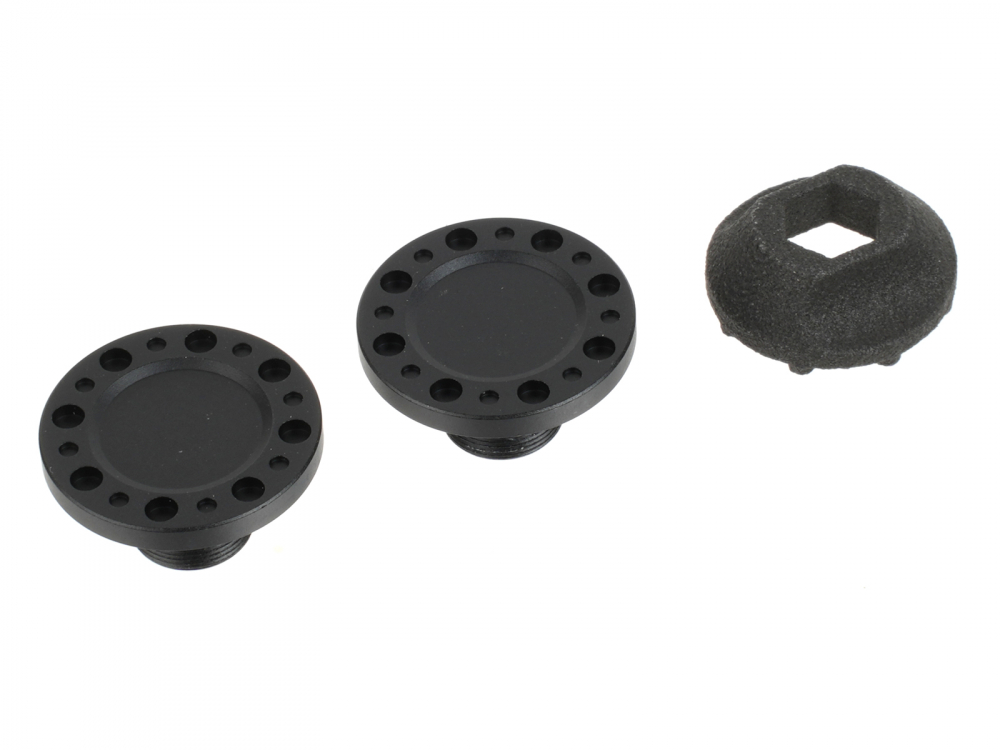 Replacement aluminum wheel cap (2) for Probuild COMBAT 1.9" wheels. Comes with tool for installation.