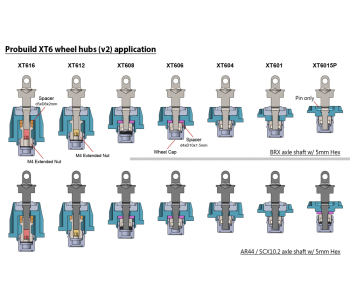 This is a pair of ProBuild™ XT604 V2 aluminum wheel hub adapters for ProBuild™ 1.9" and 2.2" wheels, and KRAIT™ TE37 beadlock wheels.