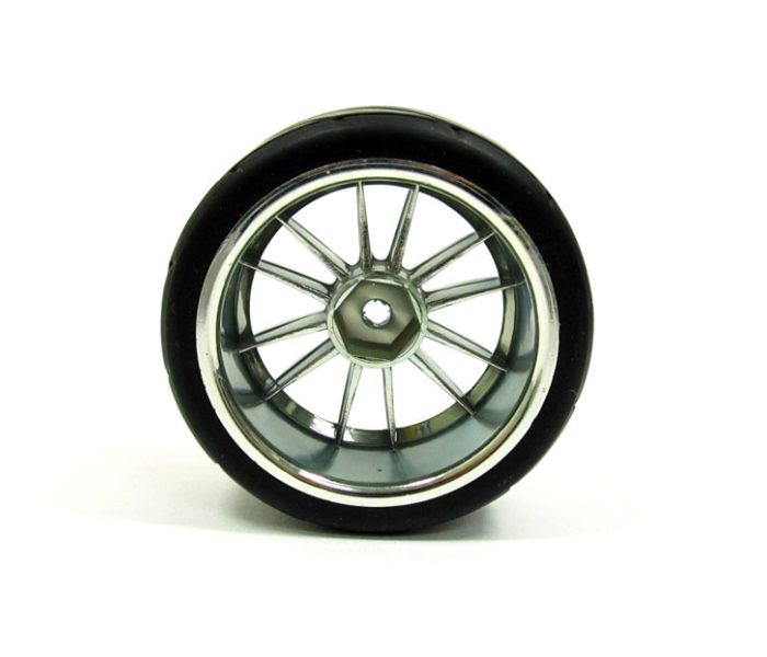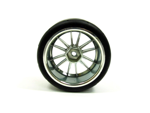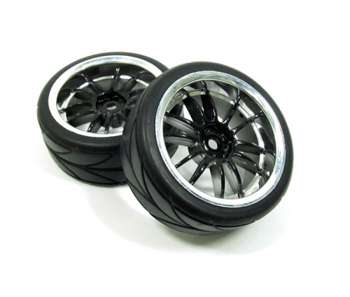 Silver Outer Ring Black Wheel & Arrow Pattern Tire Set 12-Spoke For 1/10