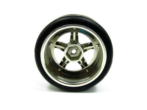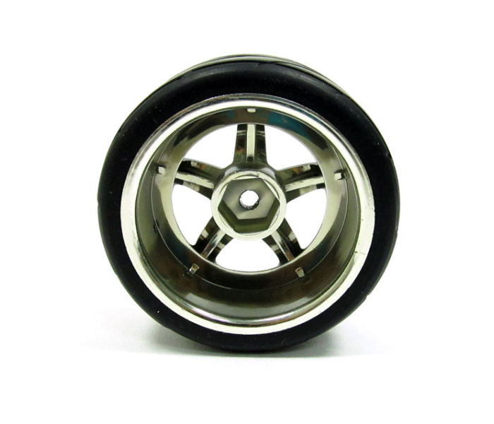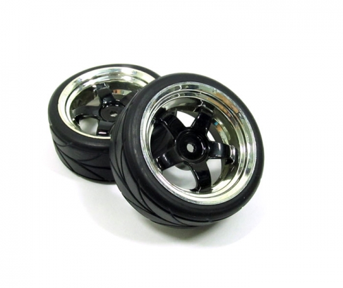 Silver Outer Ring Black Wheel & Arrow Pattern Tire Set 5-Spoke For 1/10 Black
