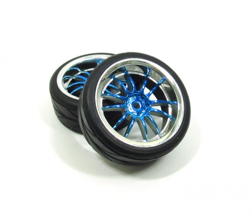 Silver Outer Ring Blue Wheel & Arrow Pattern Tire Set 12-spoke For 1/10