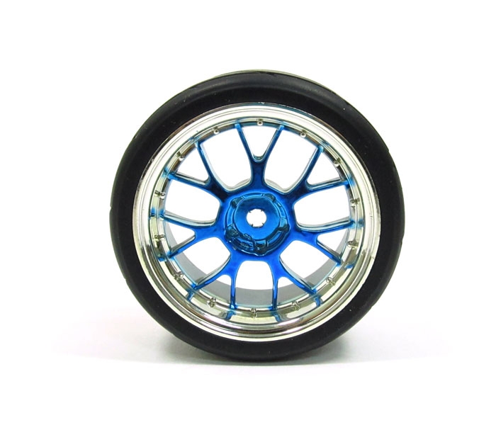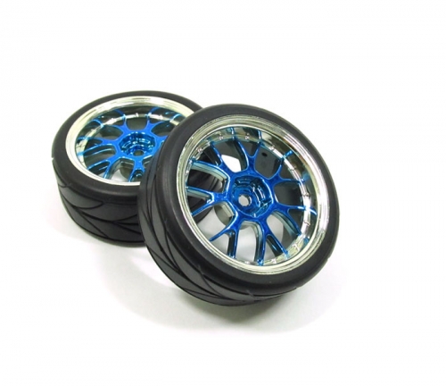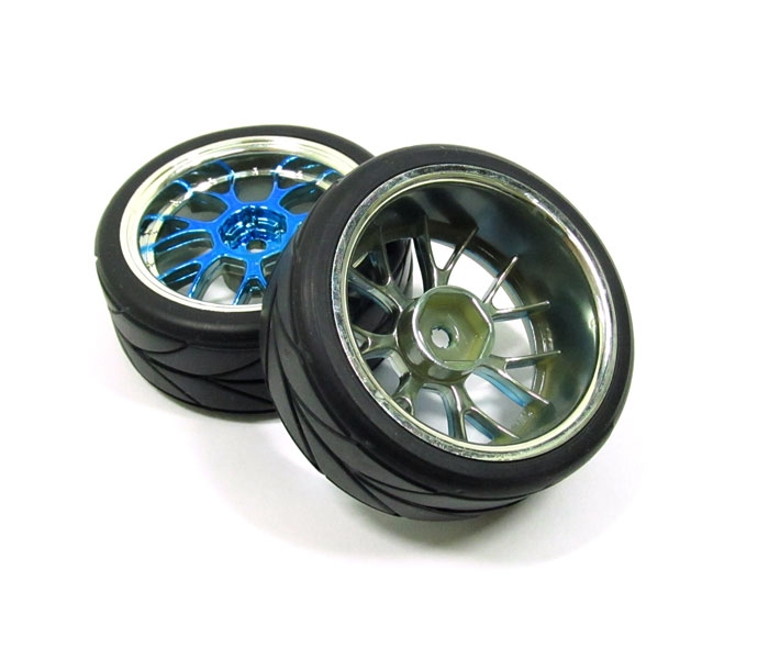 Silver Outer Ring Blue Wheel & Arrow Pattern Tire Set 7Y-Spoke For 1/10