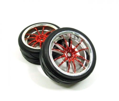 Silver Outer Ring Red Wheel & Arrow Pattern Tire Set 12-spoke For 1/10