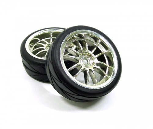 Silver Outer Ring Wheel & Arrow Pattern Tire Set 12-spoke For 1/10 Silver