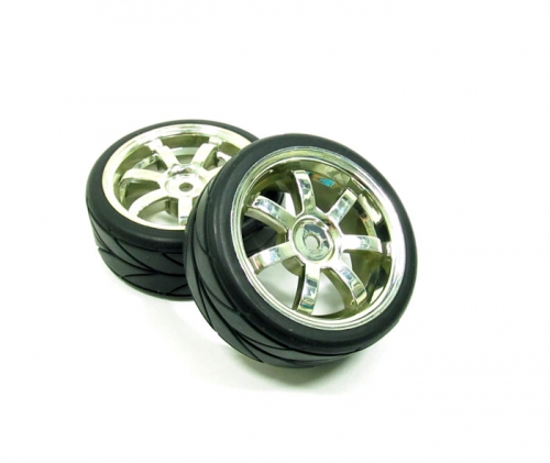 Silver Outer Ring Wheel & Arrow Pattern Tire Set 7-Spoke For 1/10