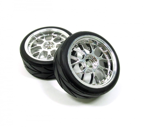 Silver Outer Ring Wheel & Arrow Pattern Tire Set 7Y-Spoke For 1/10