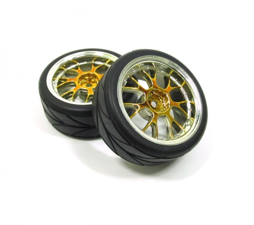 Silver Outer Ring Yellow Wheel & Arrow Pattern Tire Set 7Y-Spoke For 1/10