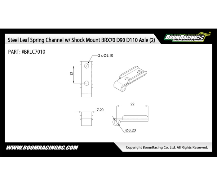 This is a standard size leaf spring channel. They come standard on the front axle of the BRX01 chassis. Includes a lower shock mount.