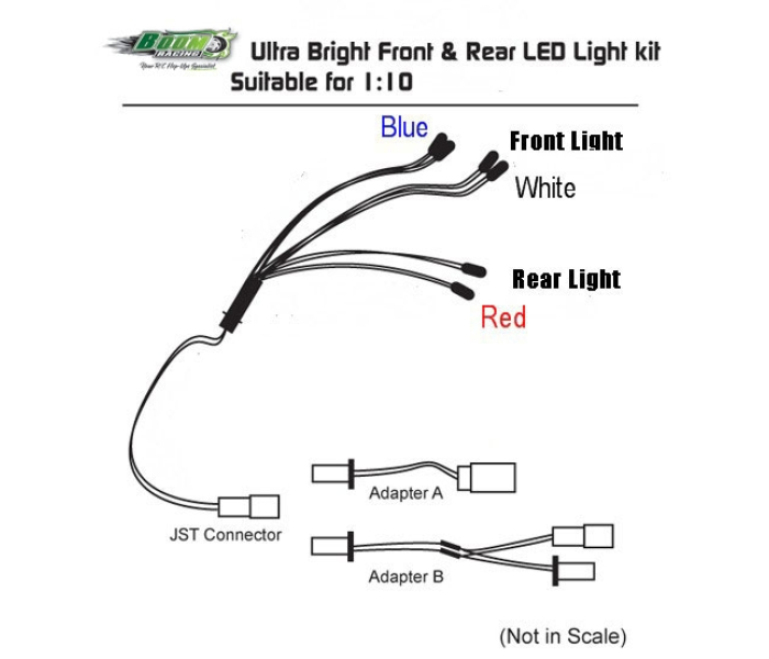 Light set has a JST Female adapter. Measures 50.0cm in length.