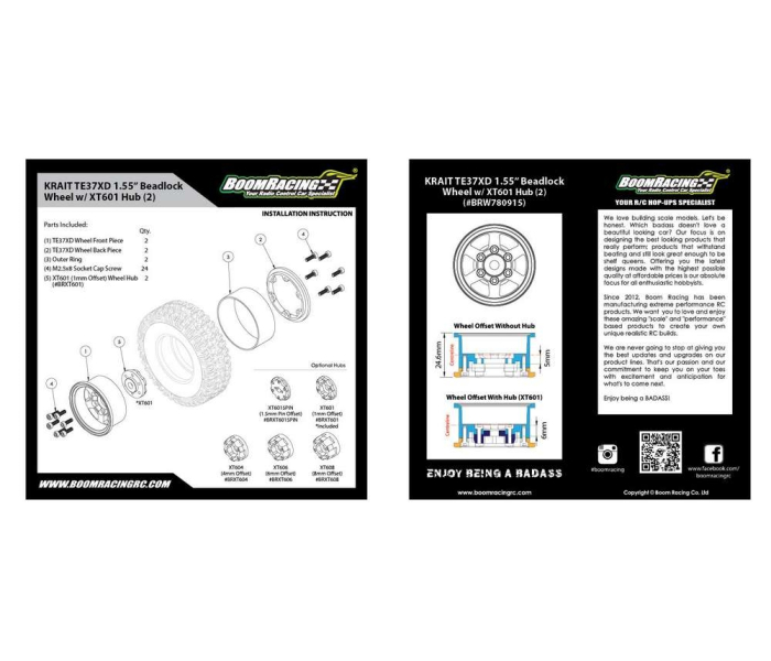 XT6 Hub Series is Boom Racing's removable aluminum 6-lug hubs. They are available in multiple sizes for the desired width.