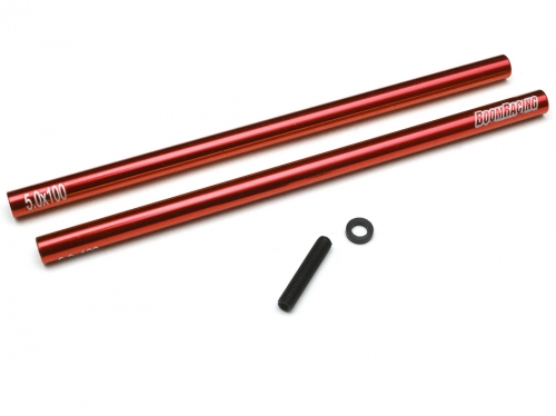 Threaded Aluminum Link Pipe Rod 5x100mm (2) w/ Set Screws & Delrin Spacers Red