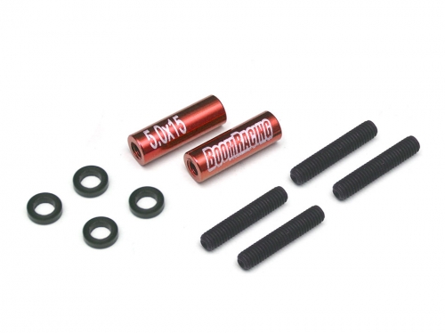Threaded Aluminum Link Pipe Rod 5x15mm (2) w/ Set Screws & Delrin Spacers Red